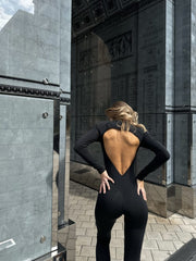 Backless jumpsuit with external seams – the perfect combination of style and functionality.