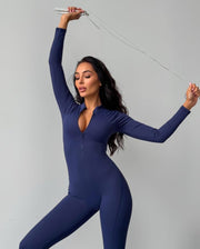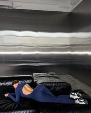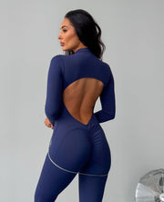 Introducing the epitome of style, comfort, and versatility: the Backless Seamless Catsuit Dark Blue.