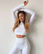 Combine with seamless leggings or biker shorts to get a perfect Co-ord set for your workouts. Add jacket, sneakers or even high heels to create a perfect Sporty Glam look! We recommend to wear thin/wide strap top under crop top.