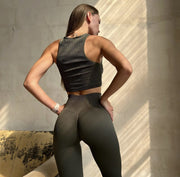 Combine with Khaki ribbed top, crop top or turtleneck to get a perfect Co-ord set for your workouts. Add jacket, sneakers or even high heels to create a perfect Sporty Glam look! And don’t forget about seamless underwear.