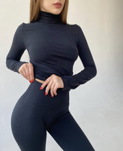 The turtleneck is made of extra soft and stretchy microfibre fabric. The material is soft, thin and seamless. The turtleneck is perfect for working out or just wearing in your spare time.