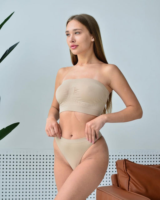 Seamless bandeau top. The top is made of extra soft and stretchy microfiber fabric. It is perfect for different kinds of sport (yoga, stretching, ...