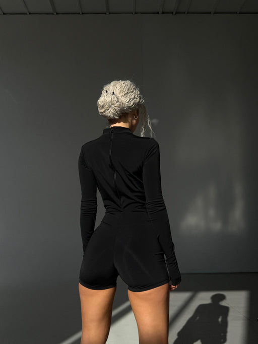 A unique and trendy 2-in-1 jumpsuit with long sleeves and a deep front cutout — made for movement, confidence, and curves. Designed to hug your bod...