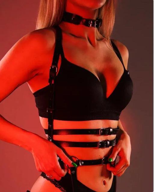 Introducing our Chain Harness Top – a striking fusion of bold design and edgy elegance. Crafted from high-quality faux leather, this unique piece o...