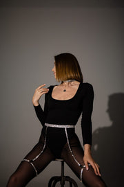 Garters & garter belt decorated with white diamonds. It will certainly add some chic to your look!
