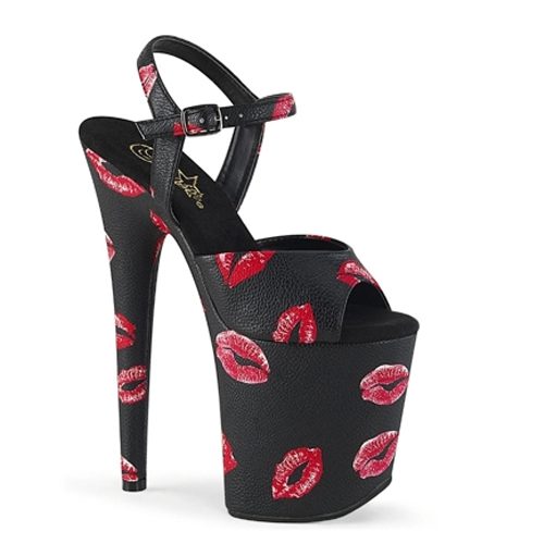 8″ (200mm) Heel, 4″ (100mm) Platform Ankle Strap Sandal Featuring Matching Upper & Bottom w/ Lip Print. Suitable for Pole dance, Strip dance, ...