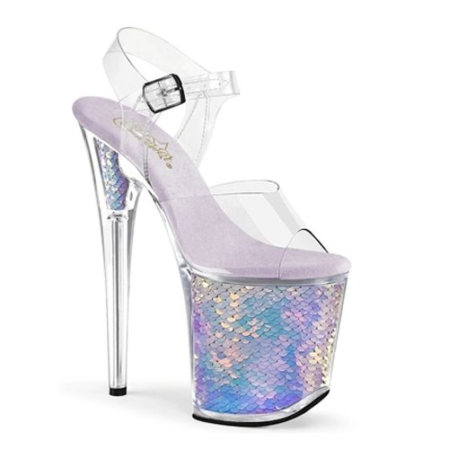 8″ (200mm) Heel, 4″ (100mm) Platform Ankle Strap Sandal Featuring Holographic Mermaid Scales Inserts in the Platform Bottom & Heel. Suitable f...