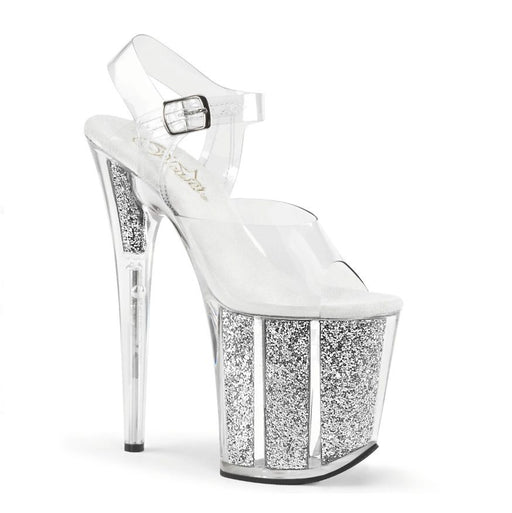 8″ (200mm) Heel, 4″ (100mm) Platform Ankle Strap Sandal w/ Glitter Inserts in the Platform Bottom. Suitable for Pole dance, Frame Up, Strip dance,...