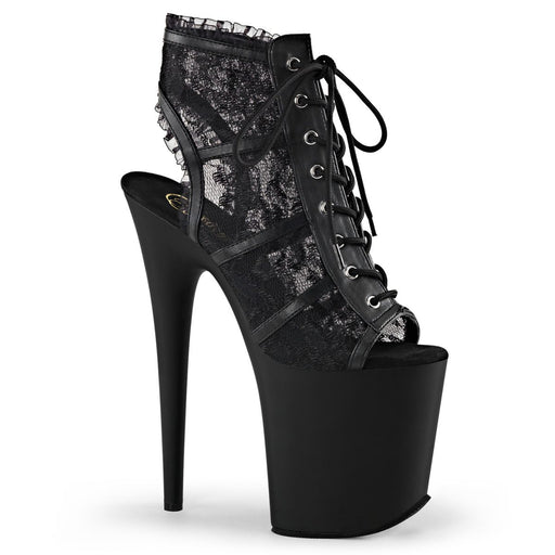 8″ Heel, 4″ Platform Open Toe/Heel Front Lace Up Ankle Bootie