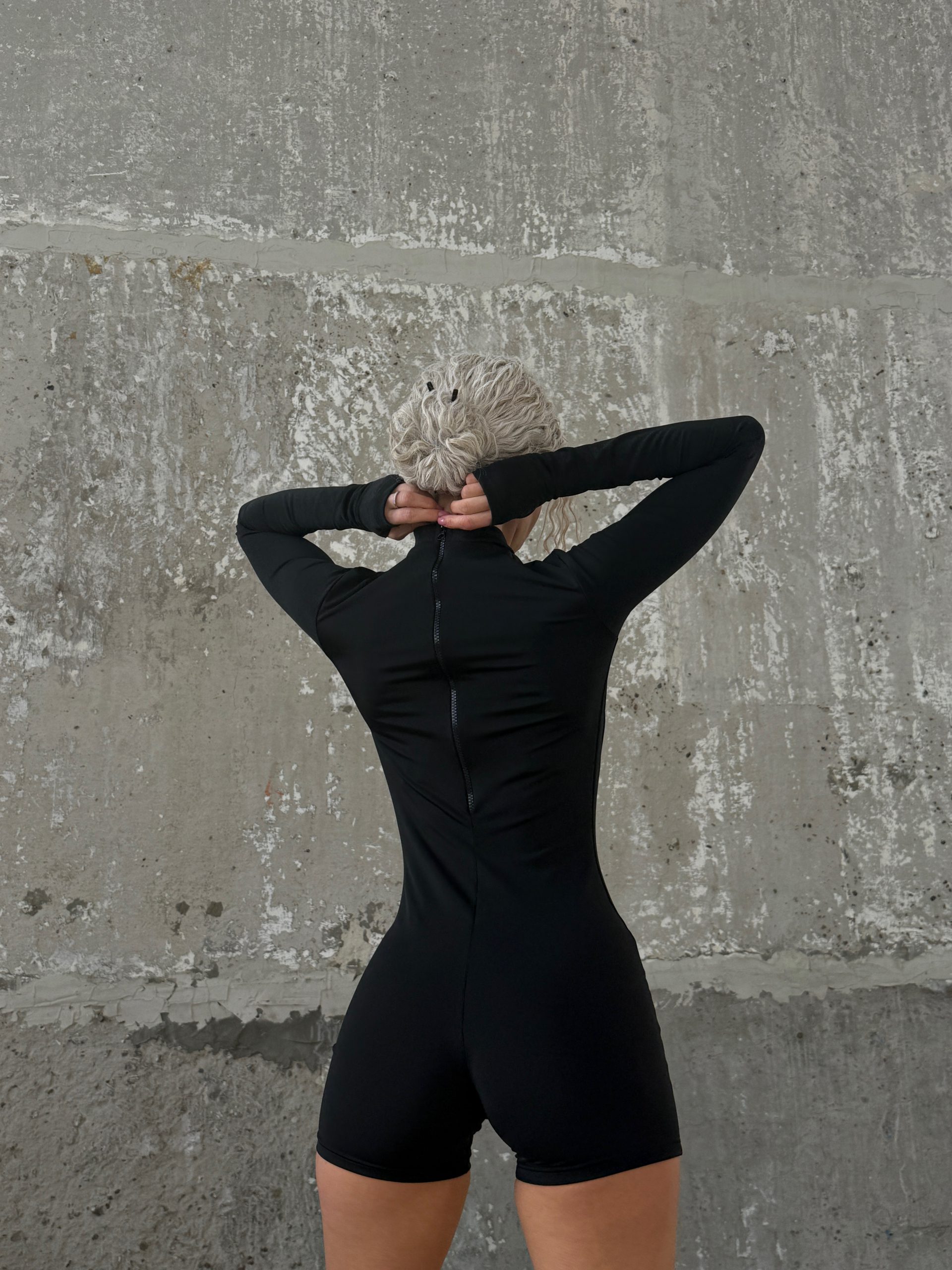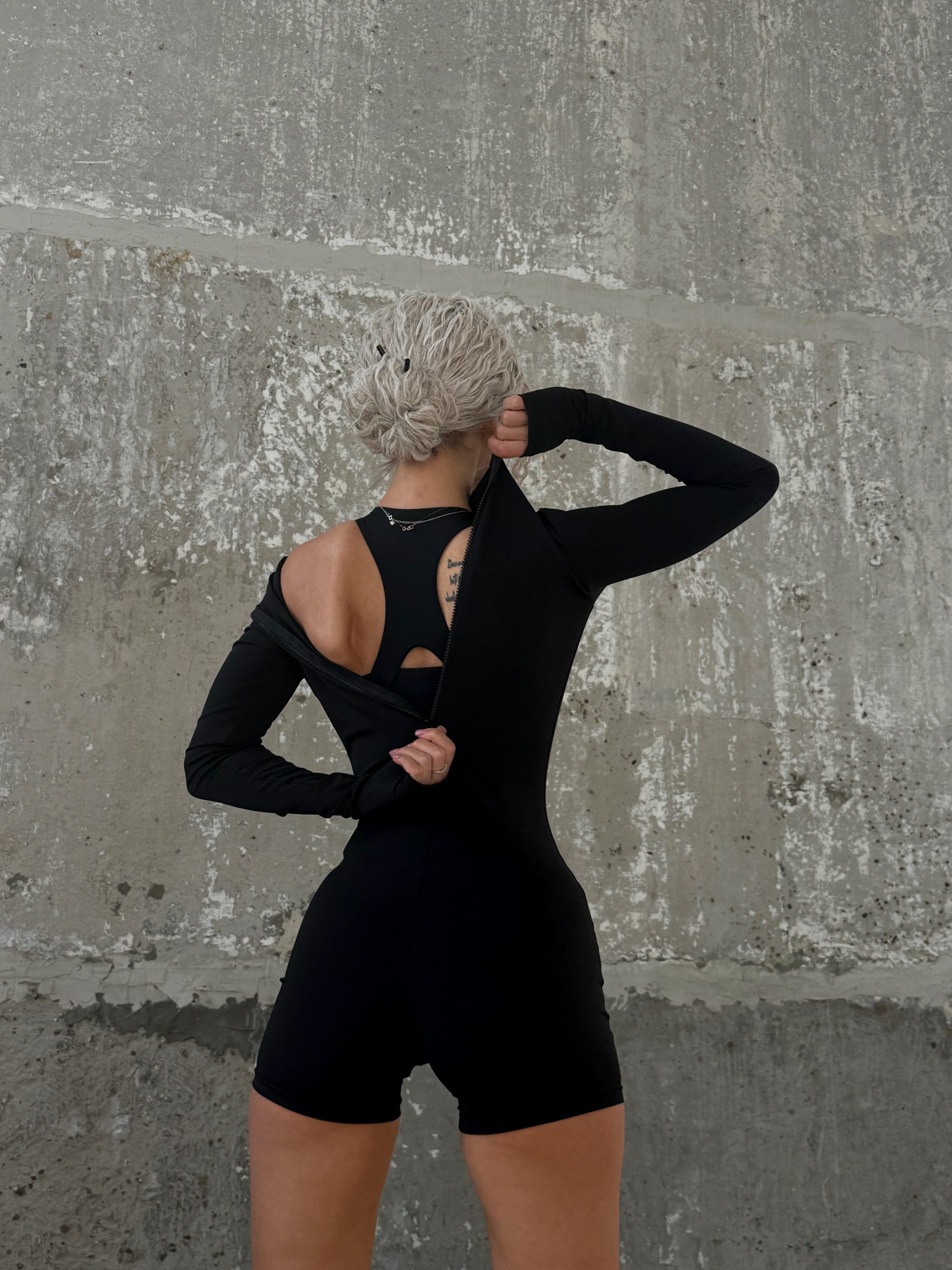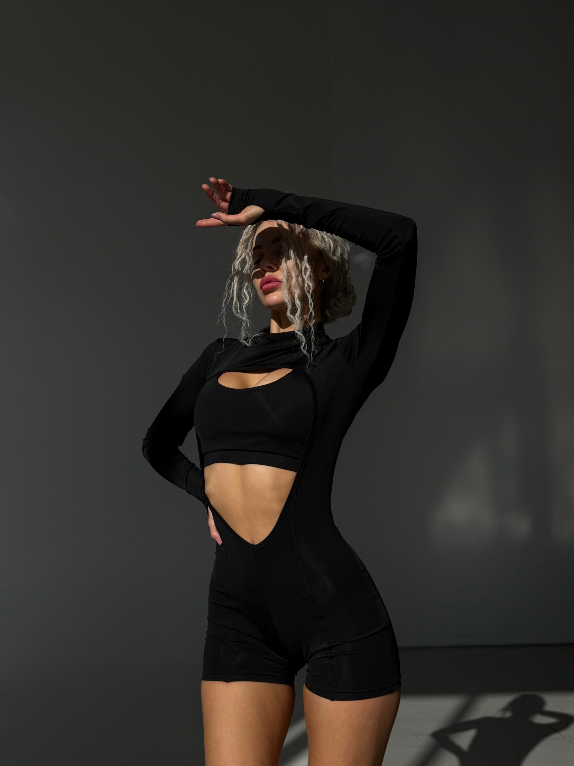 A unique and trendy 2-in-1 jumpsuit with long sleeves and a deep front cutout — made for movement, confidence, and curves. Designed to hug your body like a second skin.