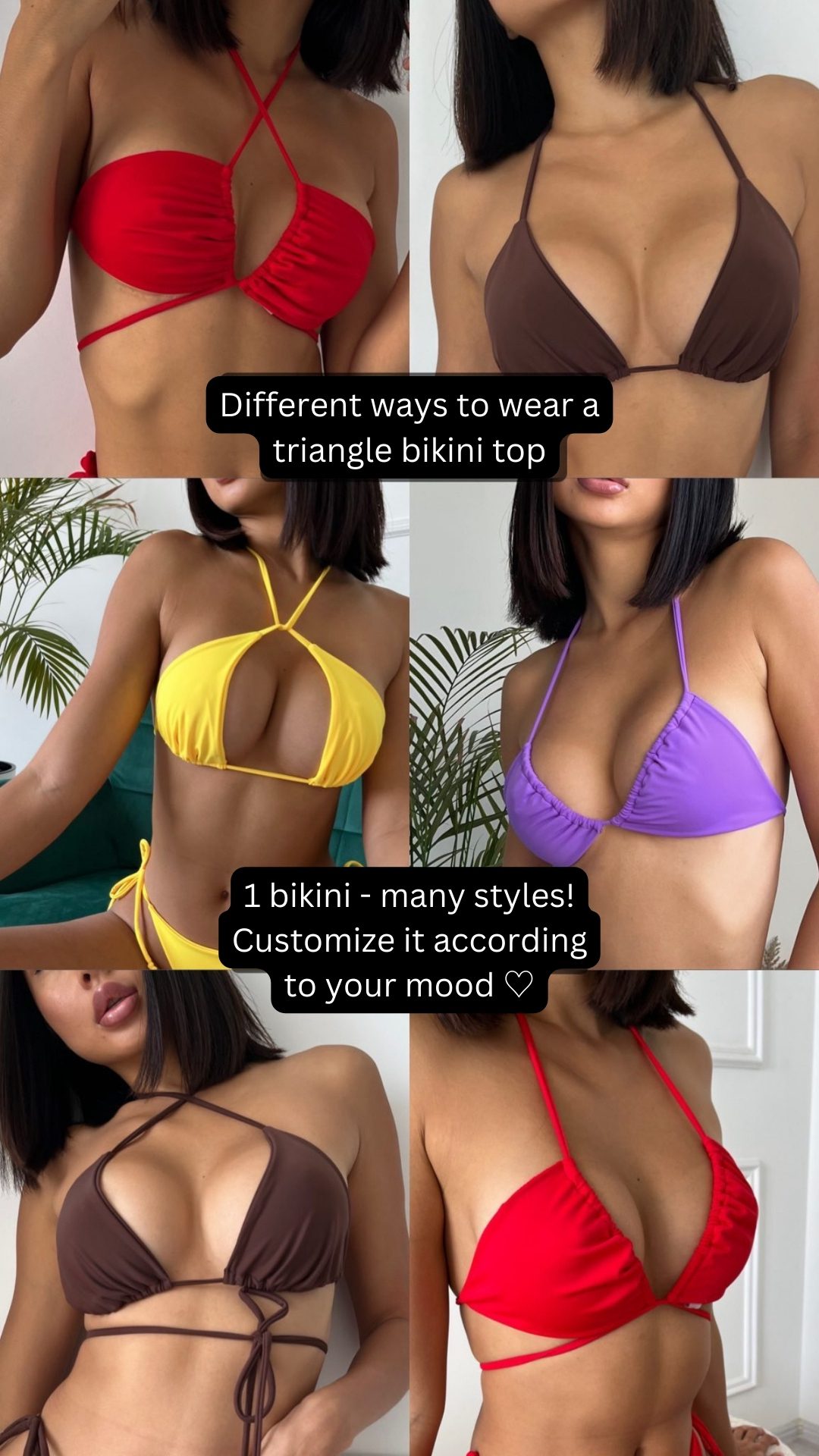 What sets our Triangle Bikini apart is its long laces, providing endless possibilities for customization and allowing you to wear the bra in a multitude of ways. Whether you prefer a classic halter neck, a stylish cross-back, an alluring crisscross front, or any other creative variation, this bikini adapts to your personal style and mood effortlessly.