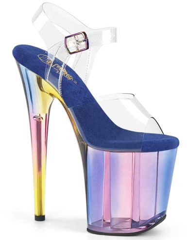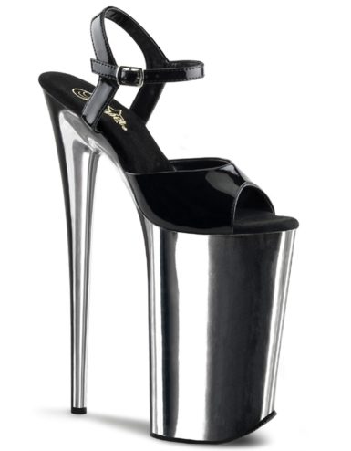 €139.009″ (229mm) Heel, 5 1/4″(133mm) Platform Double Criss-Cross Ankle Strap Sandal. **WARNING: Extreme High Heel. Not Recommended for Walking or Dancing. Are you ready to unleash your inner diva and make a bold statement on the dance floor? These stunning ankle strap sandals are designed to captivate attention and command the spotlight, ensuring you’re the center of attention both sitting and dancing!