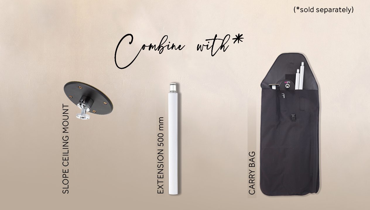 - Basic kit can be used up to 2800mm ceiling. With a 500mm extension, it can go up to 3300mm.