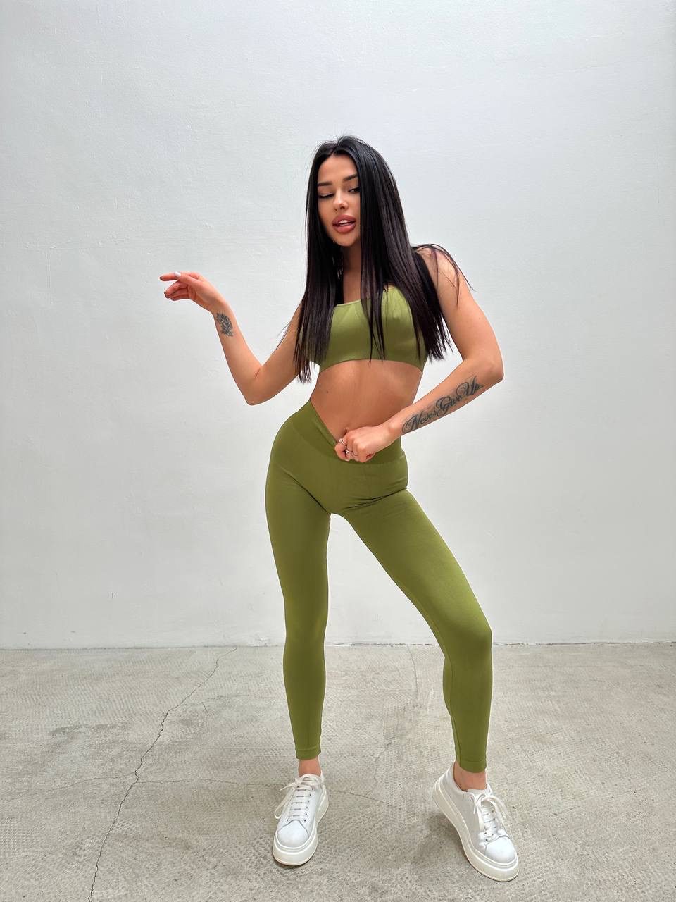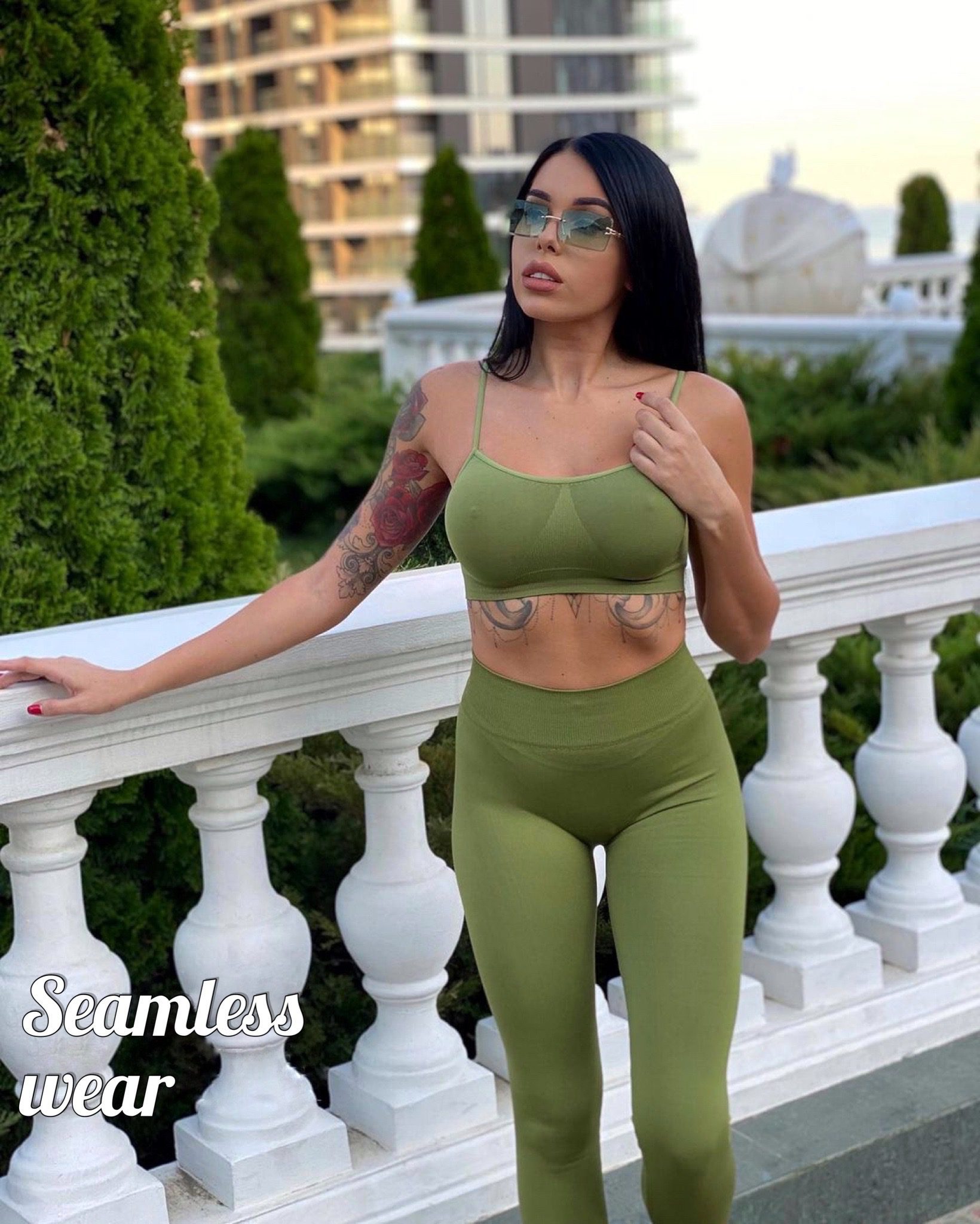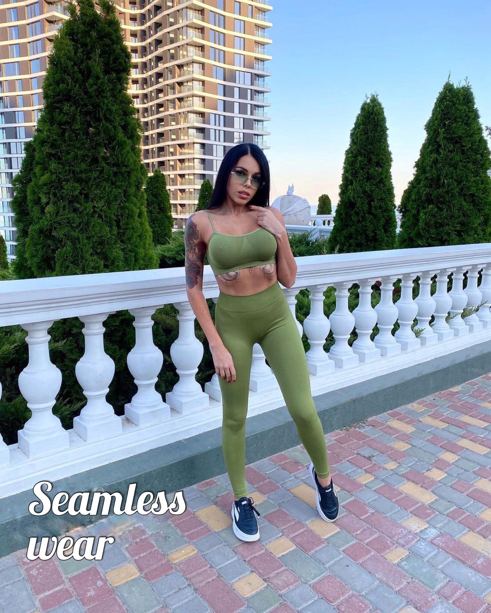 Combine with Olive Branch seamless crop top or turtleneck to get a perfect Co-ord set for your workouts. Add jacket, sneakers or even high heels to create a perfect Sporty Glam look! And don’t forget about seamless underwear.