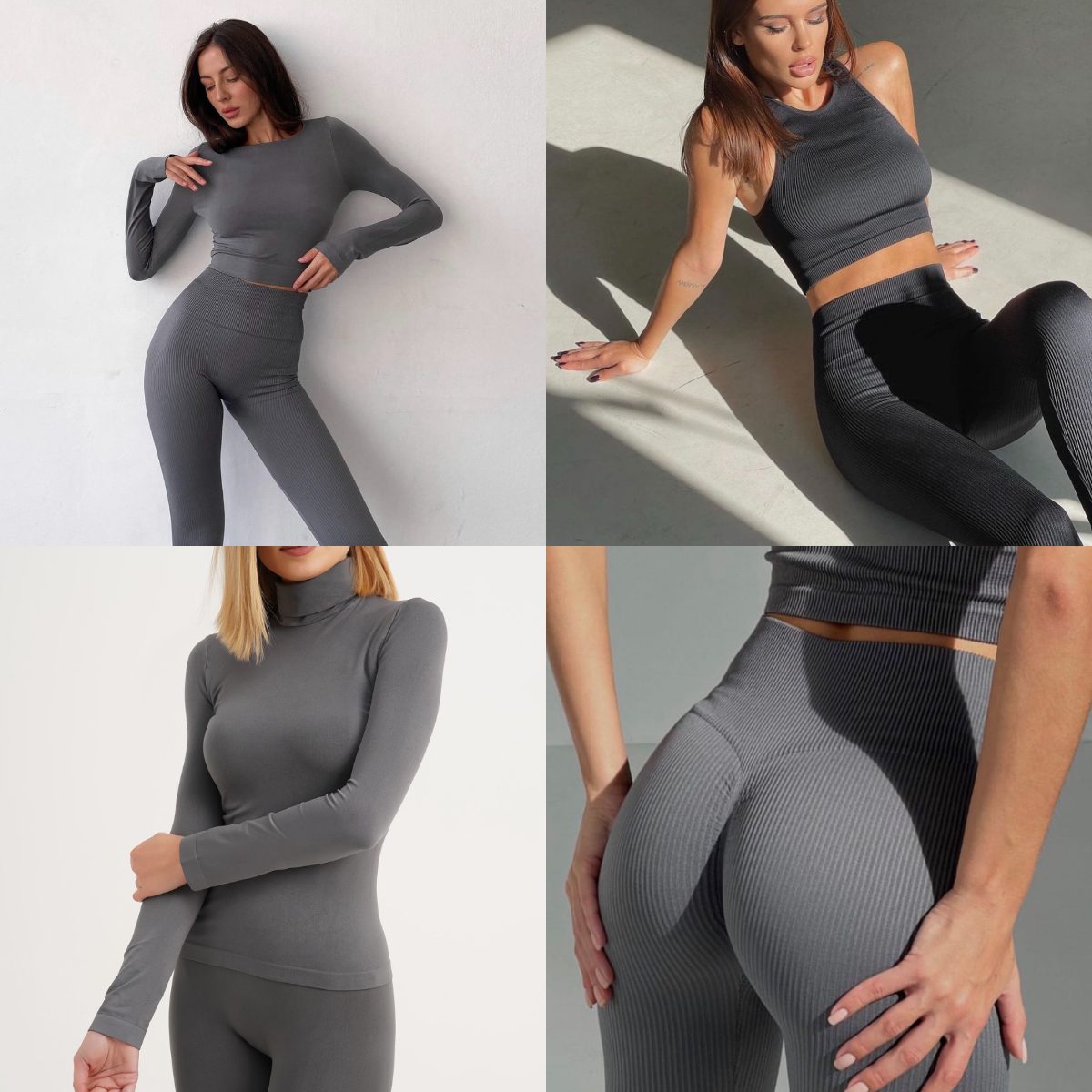 Seamless set are made of microfiber, ultra-soft and skin-friendly material. They are good for different types of sports (dancing, gym, stretching, yoga, aerial), outdoor walks or even wearing at home. They are very stretchy, breathable and light, but at the same time perfectly emphasize all the advantages of your body.