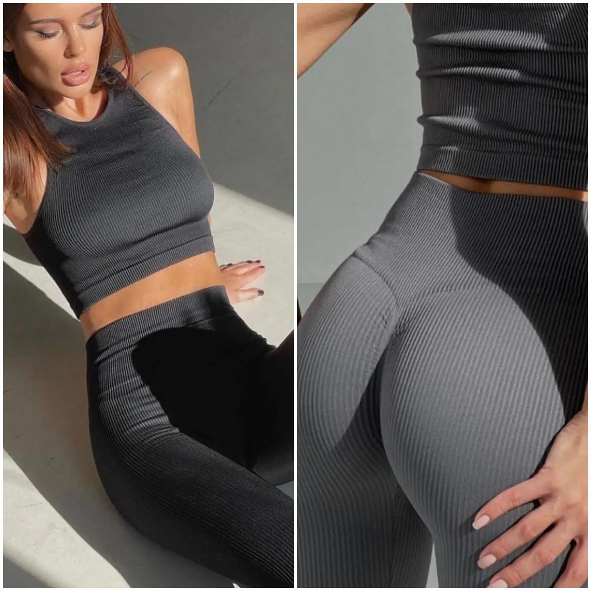 Seamless set are made of microfiber, ultra-soft and skin-friendly material. They are good for different types of sports (dancing, gym, stretching, yoga, aerial), outdoor walks or even wearing at home. They are very stretchy, breathable and light, but at the same time perfectly emphasize all the advantages of your body.