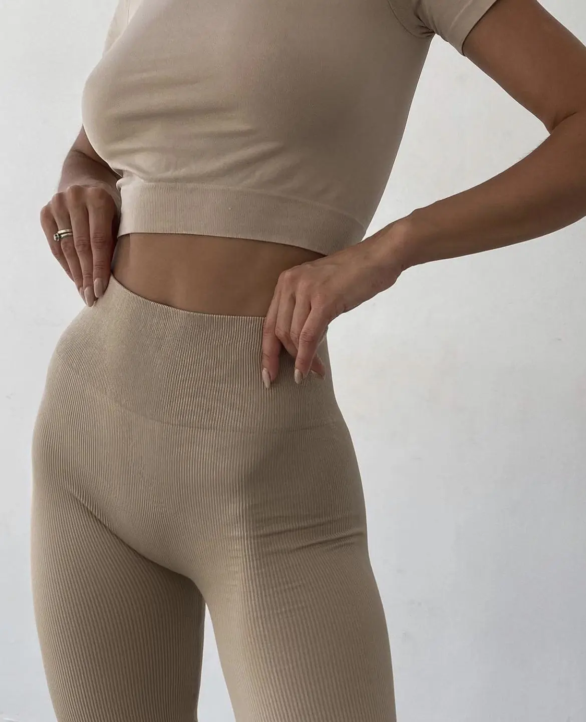 Seamless set are made of microfiber, ultra-soft and skin-friendly material. They are good for different types of sports (dancing, gym, stretching, yoga, aerial), outdoor walks or even wearing at home. They are very stretchy, breathable and light, but at the same time perfectly emphasize all the advantages of your body.