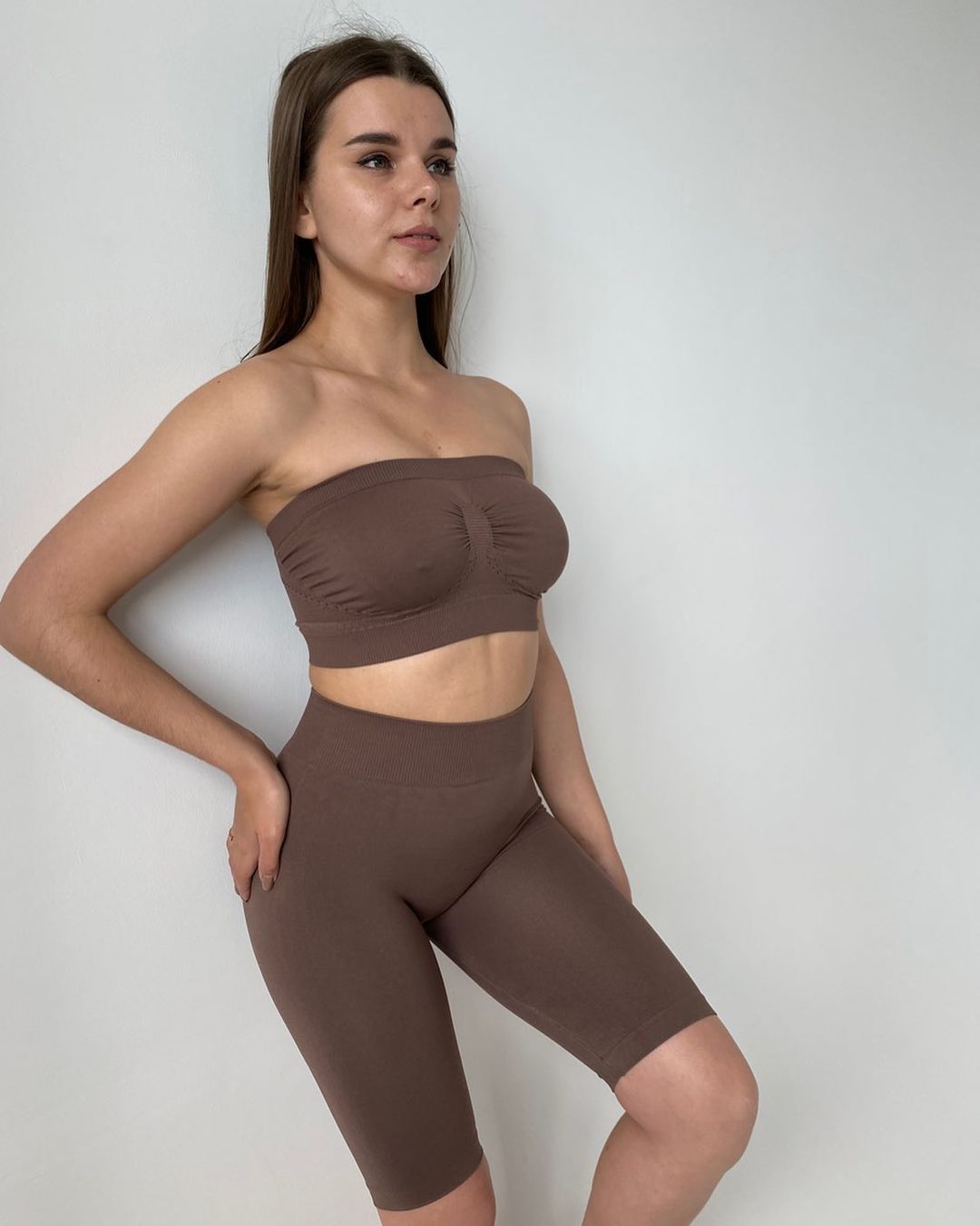 Seamless bandeau top. The top is made of extra soft and stretchy microfiber fabric. It is perfect for different kinds of sport (yoga, stretching, fitness, dance, outdoor walks) or just wearing at home.
