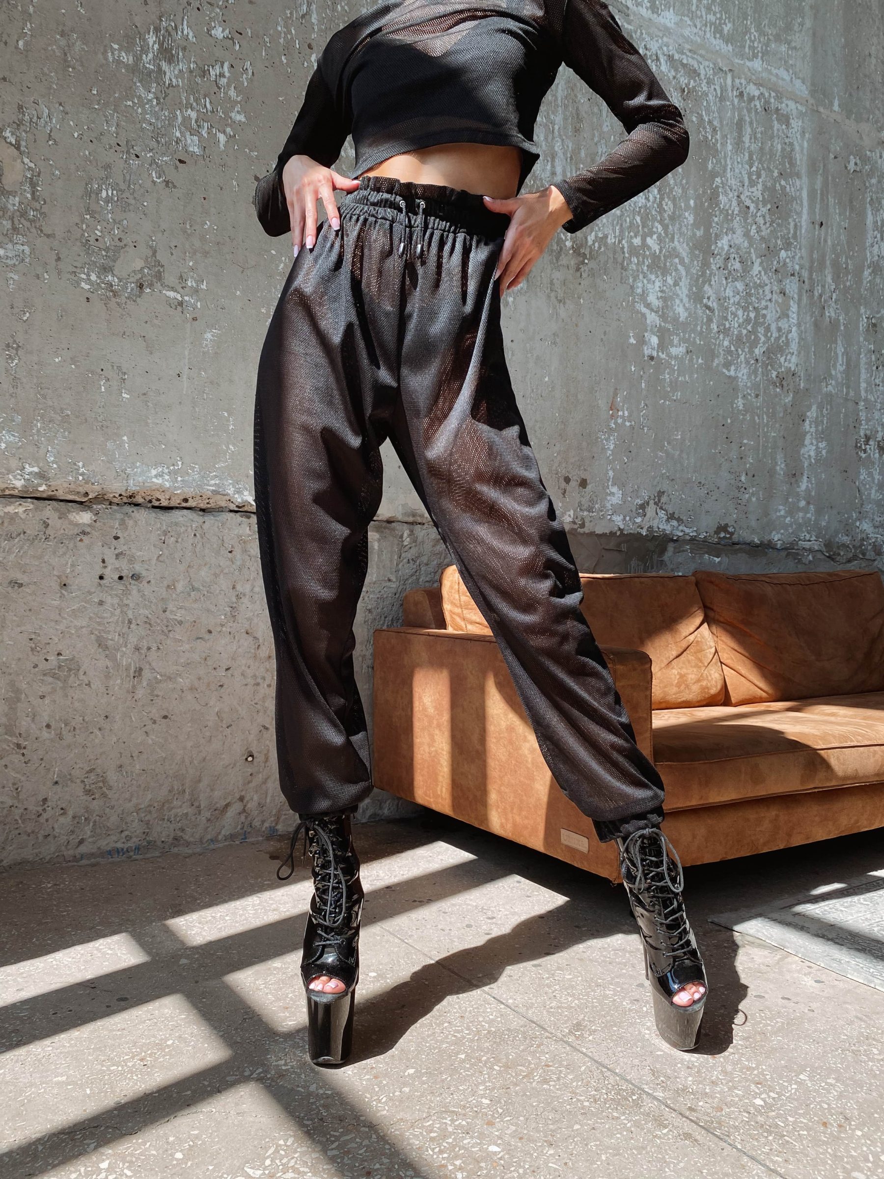 Tutvustame meie stiilseid võrkkangast jogger-pükse – perfektne kooslus elegantsist ja sportlikusest. Püksid on loodud tantsijatele, kes hindavad nii stiili kui ka sensuaalsust. Vastupidavast võrkkangast valmistatud püksid pakkuvad luksust, samal ajal kui kanga kvaliteet tagab pikkajalist kasutamisvõimalust. Nööridega reguleeritav vöökoht.