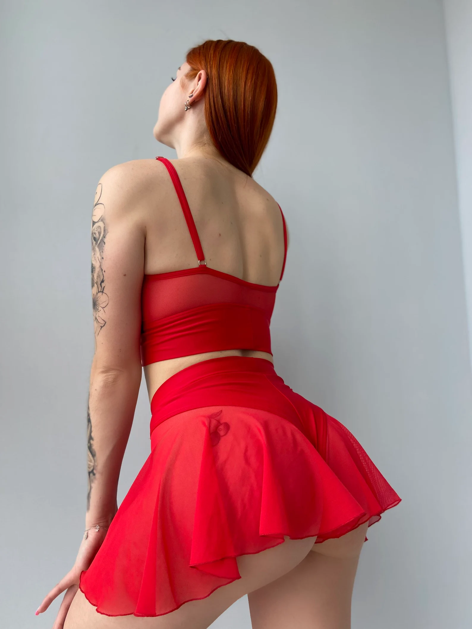 Naiselik topp läbipaistvate lõikudega. Topp on tehtud pehmest ja venivast, kuid samal ajal hästi vastupidavast lükrast. Sobib nii tantsimiseks kui ka sportimiseks.