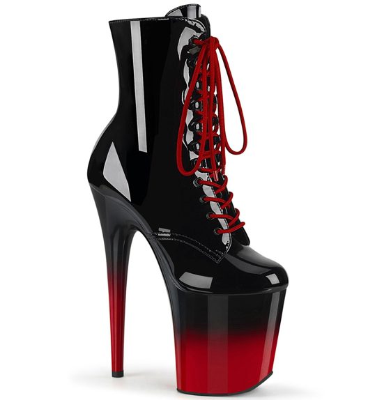 8″ Heel, 4″ Platform Two Tone Lace-Up Ankle Boot, Side Zip
