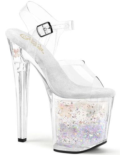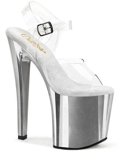 8″ (20cm) kontsaga, 4″ (10cm) platvormiga pahkluurihmaga sandaalid postitantsuks.