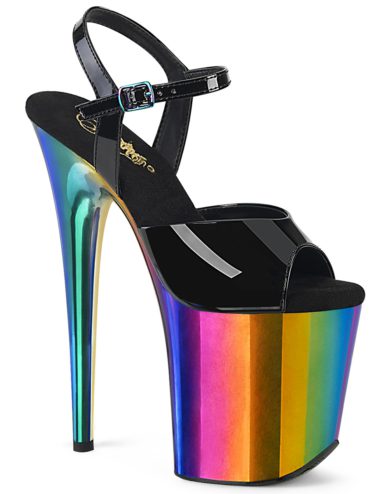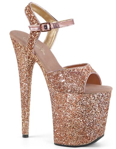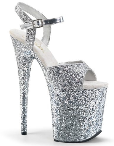 8″ Heel, 4″ Platform Ankle Strap Sandal with Holographic Glitter Covered Platform