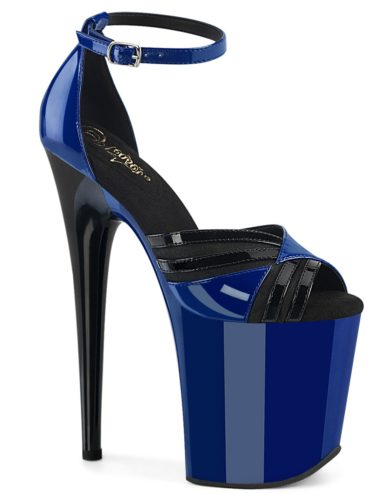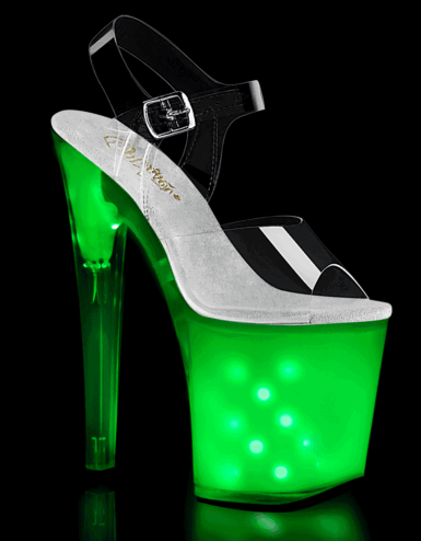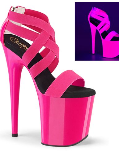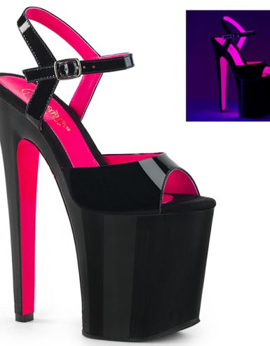 8″ (20.3cm) Heel, 4″ (10.2cm) Platform Two Tone Ankle Strap Sandal Featuring Neon Hot Pink UV Blacklight Effect. Suitable for Pole dance, Frame Up, Strip dance, Exotic dance classes, competition, photoshoot.