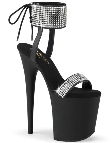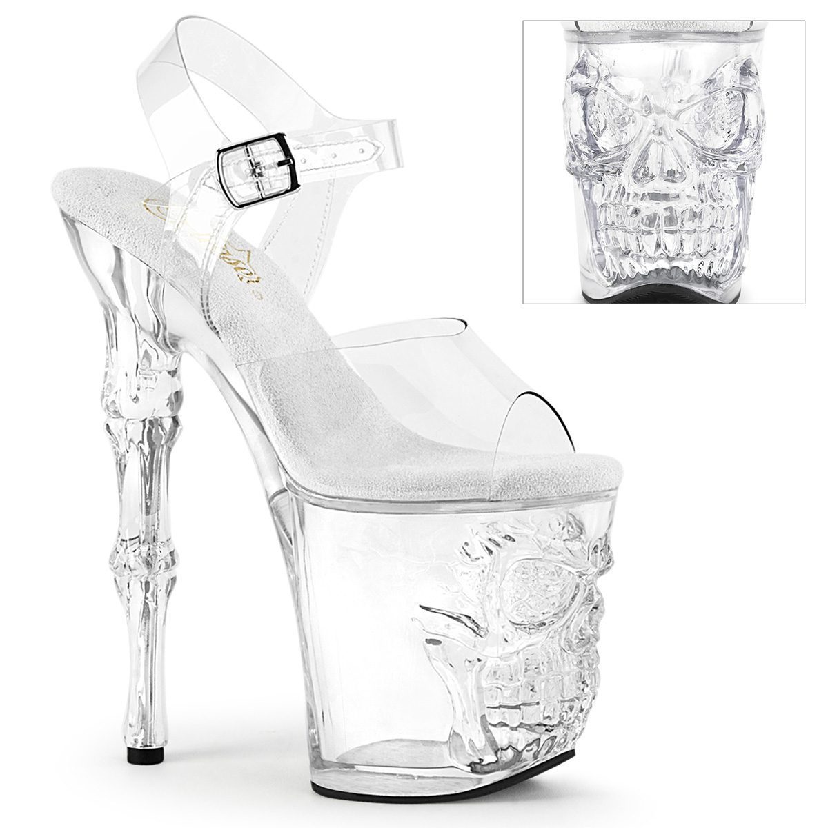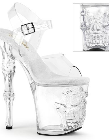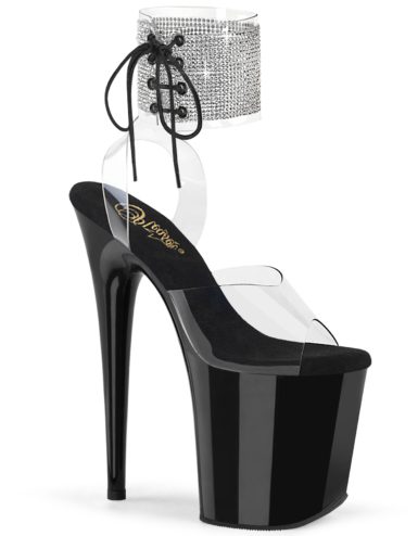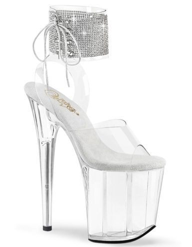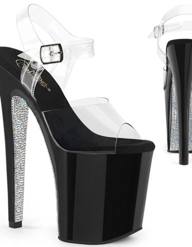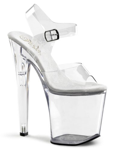 8″ (20.3cm) Spike Heel, 4″ (10.2cm) Platform Ankle Strap Peep Toe Sandal, Clear. Suitable for Pole dance, Frame Up, Strip dance, Exotic dance classes, competition, photoshoot.