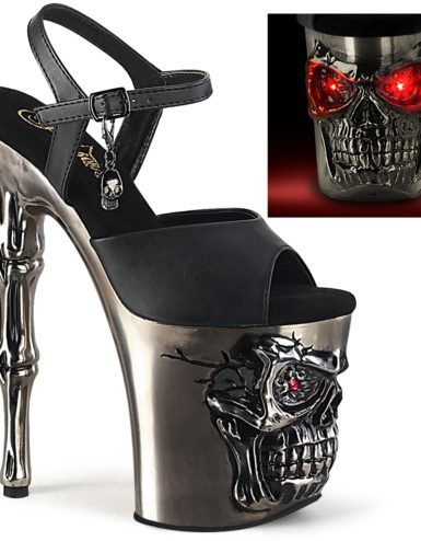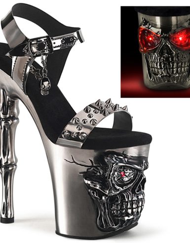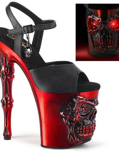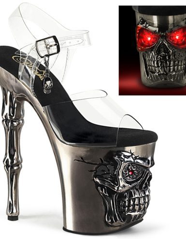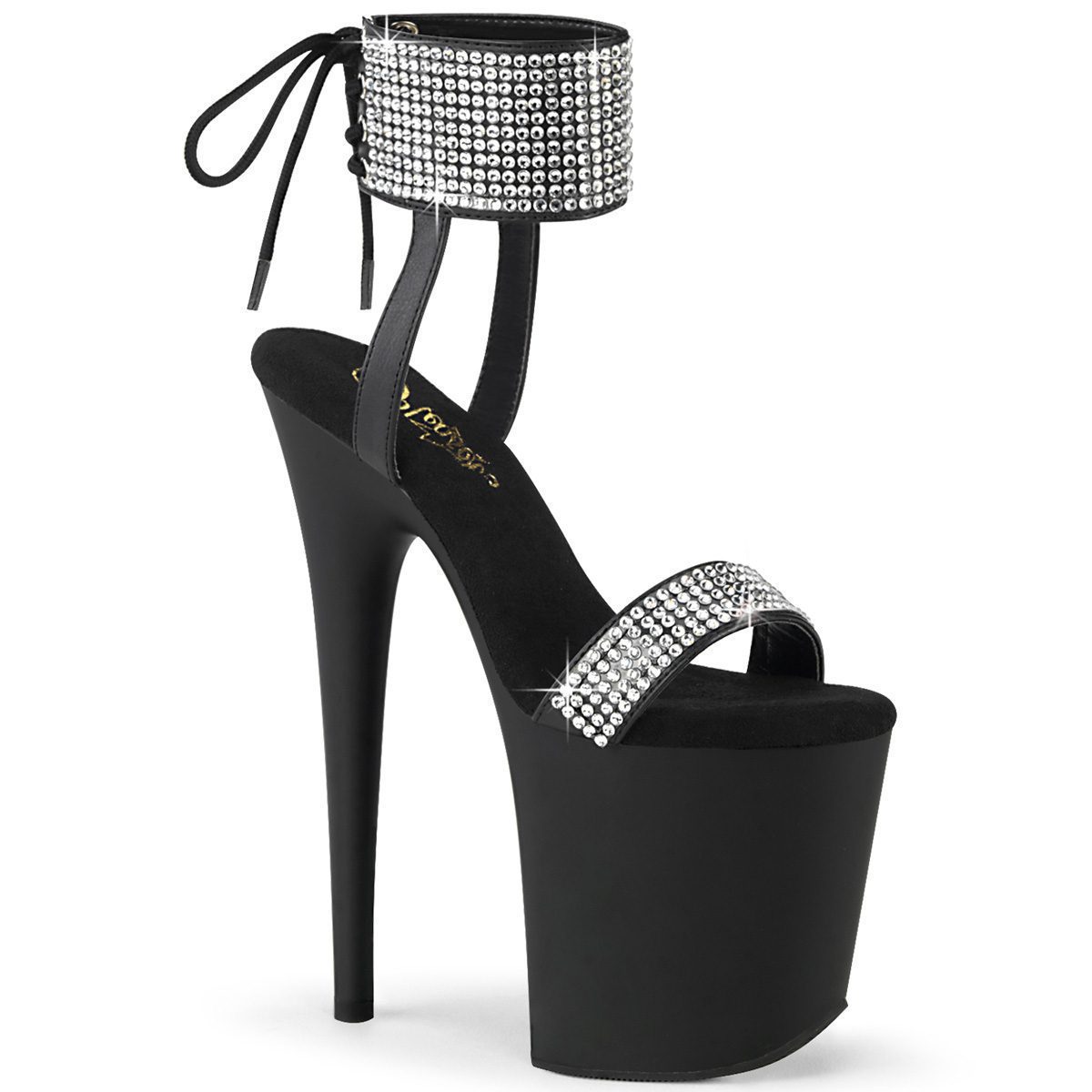 8″ Heel, 4″ Platform Ankle Strap Sandal with Holographic Glitter Covered Platform