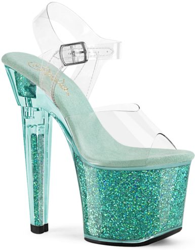 Algne hind oli: €120.00.€80.00Current price is: €80.00.7″ (178mm) Heart Shaped Heel, 3 1/4″ (83mm) Platform Ankle Strap Sandal Featuring Iridescent Glitters on the Interior Walls of the Platform Bottom & Heel. Suitable for Pole dance, Frame Up, Strip dance, Exotic dance classes, competition, photoshoot.