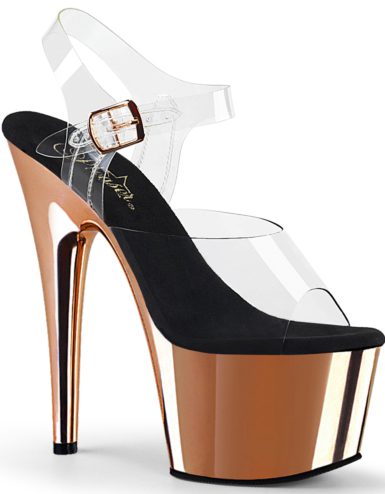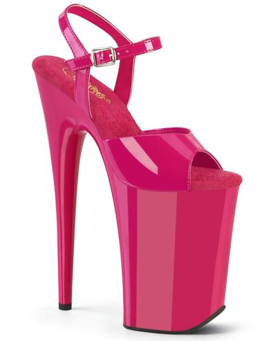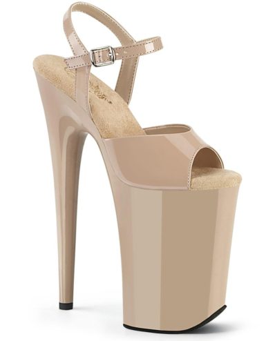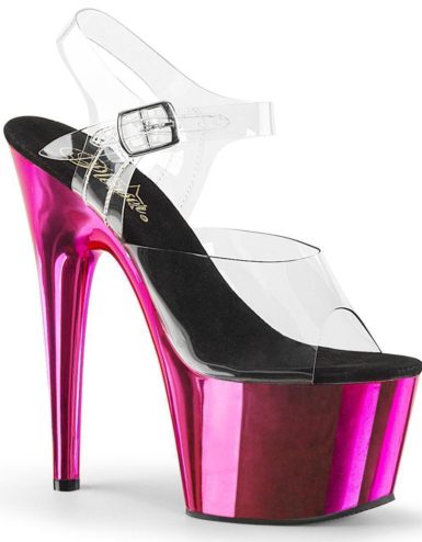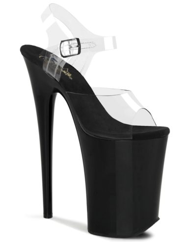 8″ (20.3cm) Stiletto Heel, 4″ (10.2cm) Platform Ankle Strap Sandal with Chrome Plated Bottom. Suitable for Pole dance, Frame Up, Strip dance, Exotic dance classes, competition, photoshoot.