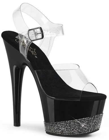 7″ (178mm) Heel, 2 3/4″ (70mm) Platform Ankle Strap Sandal Featuring Rhinestone Encrusted Platform