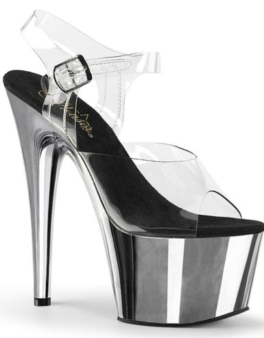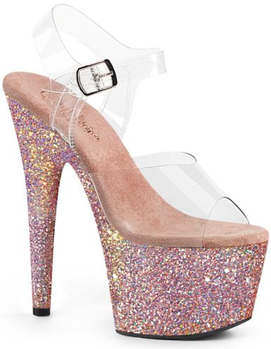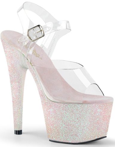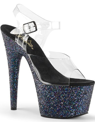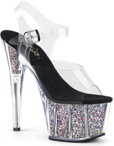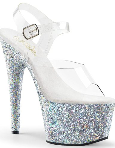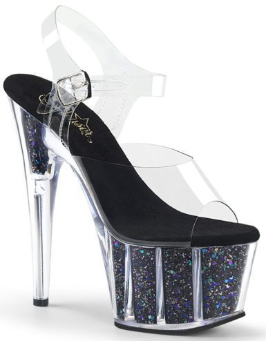 7″ (178mm) Heel, 2 3/4″ (70mm) Platform Ankle Strap Sandal w/ Confetti Glitter Inserts in the Platform Bottom. Suitable for Pole dance, Frame Up, Strip dance, Exotic dance classes, competition, photoshoot.