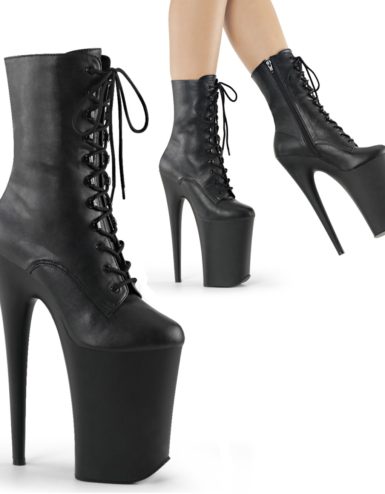 Algne hind oli: €135.00.€108.00Current price is: €108.00.7″ (178mm) Heel, 2 3/4″ (70mm) Platform O-Ring Lace-Up Front Ankle Boot Featuring Fully Wrapped Platform Bottom, Inner Side Zip Closure. Includes a Pair of Matching Boot Protectors.