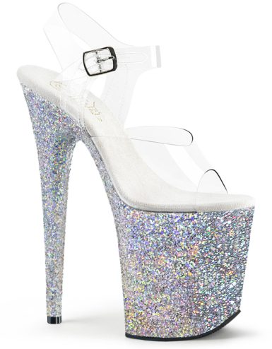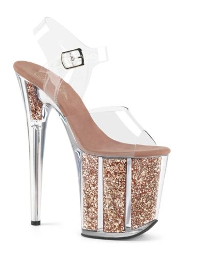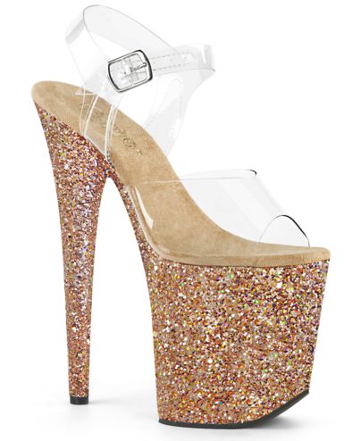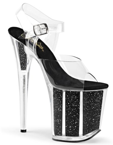 8″ (200mm) Heel, 4″ (100mm) Platform Ankle Strap Sandal w/ Glitter Inserts in the Platform Bottom. Suitable for Pole dance, Frame Up, Strip dance, Exotic dance classes, competition, photoshoot.