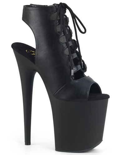 8″ (200mm) Heel, 4″ (100mm) Platform Open Toe/Heel Sandal w/ Lace-Up Ties & Wrapping Straps Closure, Full Inner Side Zip Closure. Suitable for Pole dance, Frame Up, Strip dance, Exotic dance classes, competition, photoshoot.
