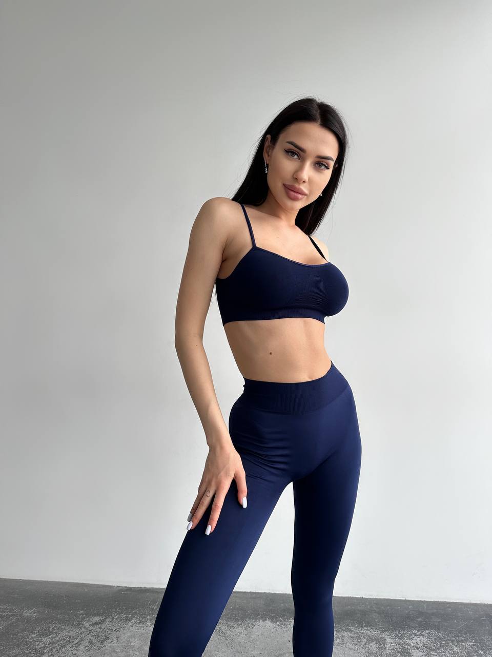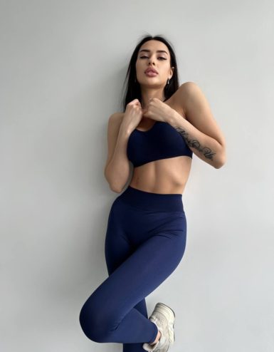 Combine with Dark Blue seamless crop top or turtleneck to get a perfect Co-ord set for your workouts. Add jacket, sneakers or even high heels to create a perfect Sporty Glam look! And don’t forget about seamless underwear.