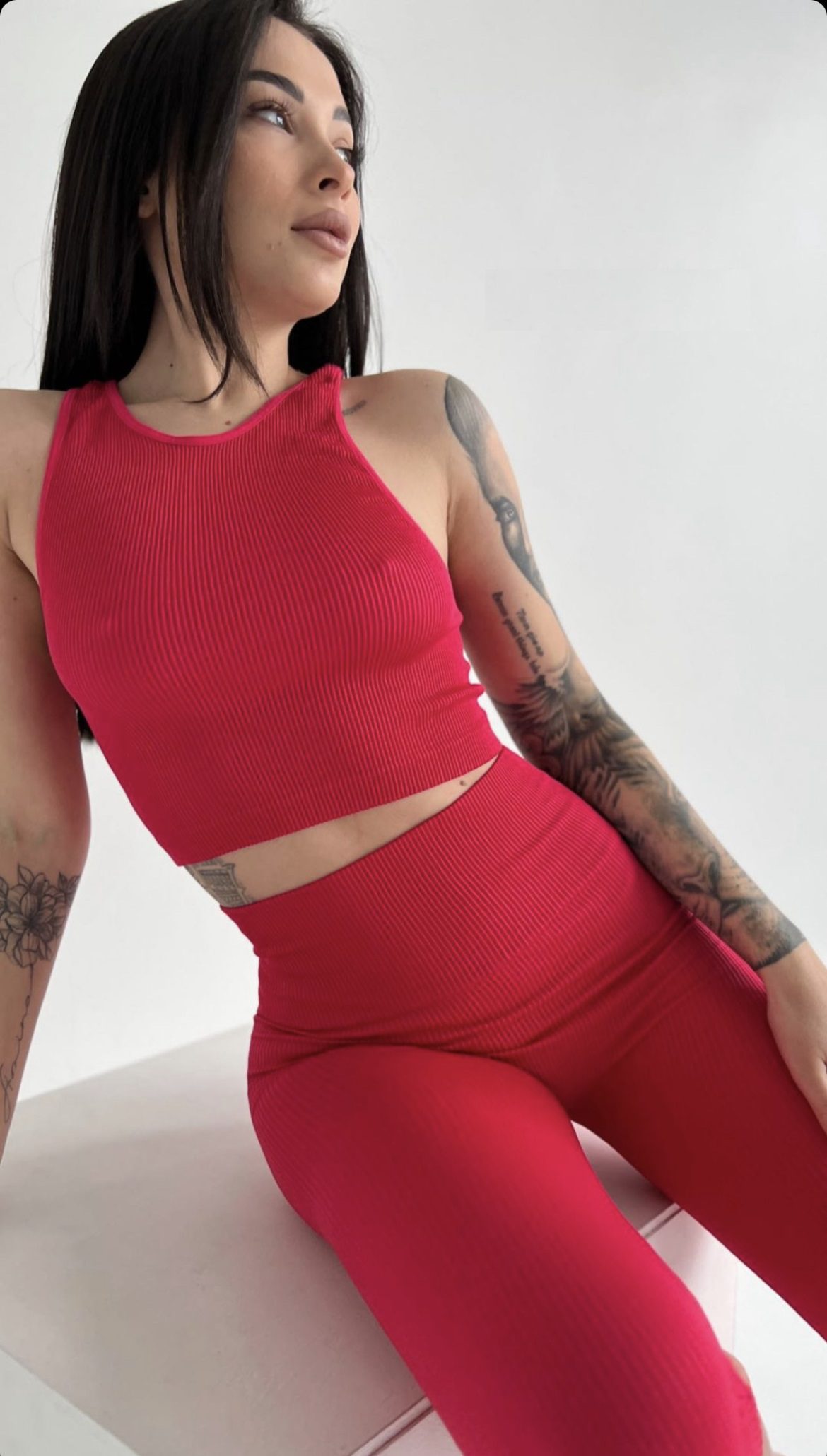 Combine with Bordeaux ribbed top, crop top or turtleneck to get a perfect Co-ord set for your workouts. Add jacket, sneakers or even high heels to create a perfect Sporty Glam look! And don’t forget about seamless underwear.