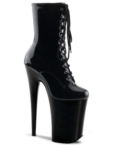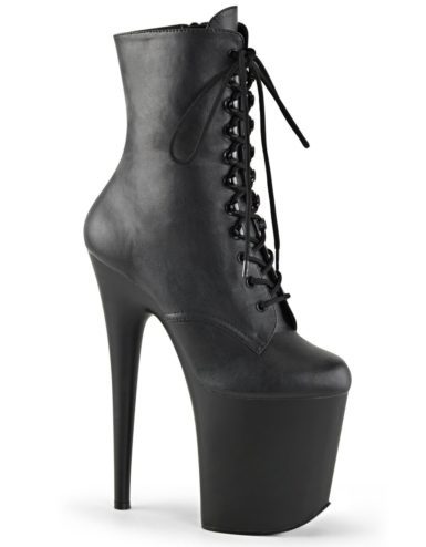 €140.00Step into the spotlight with the Flamingo-1020 lace-up ankle boot made of black faux lather. Standing tall with an 20cm heel and a 10cm platform, these boots will command attention wherever you go. With the convenience of an inner side zip closure, these boots are as easy to wear as they are breathtaking to behold. Perfect for dancers, performers, or those who simply enjoy making a bold fashion statement, the Flamingo-1020 is designed to turn heads and make you feel empowered.