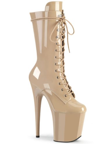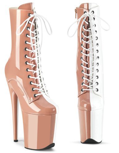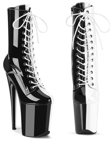 Original price was: €142.00.€113.00Current price is: €113.00.8″ (200mm) Heel, 4″ (100mm) Platform Lace-Up Front Mid Calf Boot Featuring Fully Wrapped Platform Bottom, Inner Side Zip Closure. Suitable for Pole dance, Frame Up, Strip dance, Exotic dance classes, competition, photoshoot.