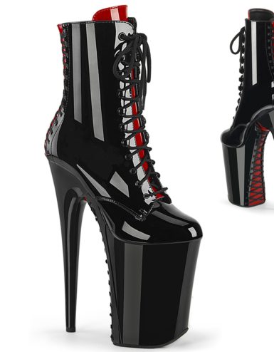 Original price was: €142.00.€113.00Current price is: €113.00.8″ (200mm) Heel, 4″ (100mm) Platform Lace-Up Front Mid Calf Boot Featuring Fully Wrapped Platform Bottom, Inner Side Zip Closure. Suitable for Pole dance, Frame Up, Strip dance, Exotic dance classes, competition, photoshoot.