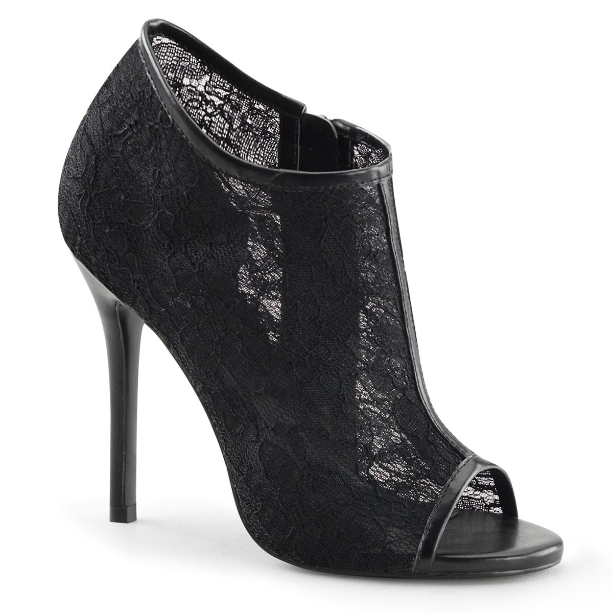 Genuine leather high-heel shoes with lace front and quick side zipper.