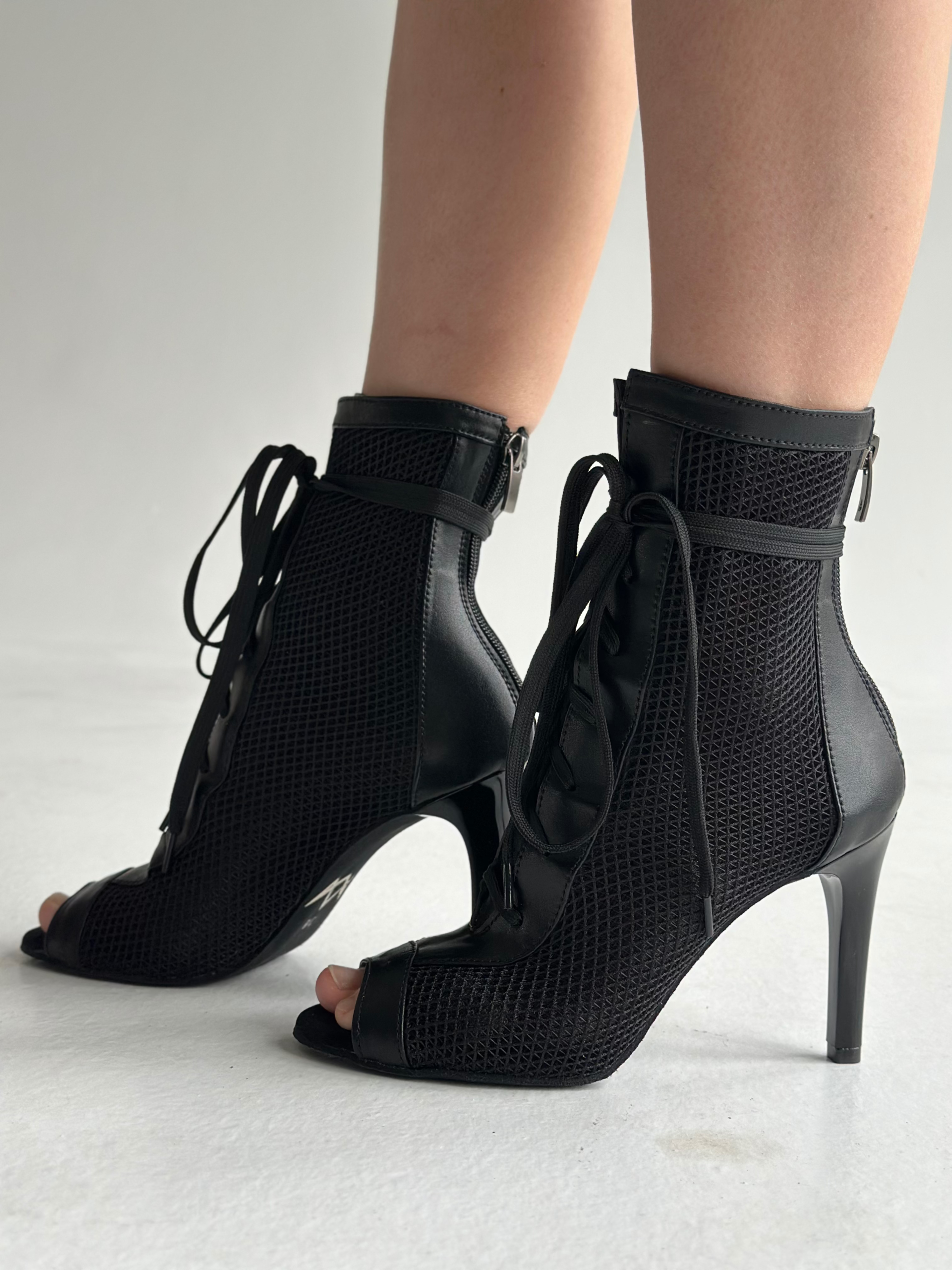 PRO high-heel shoes: Italian leather + breathable mesh, lace front, quick back zipper.