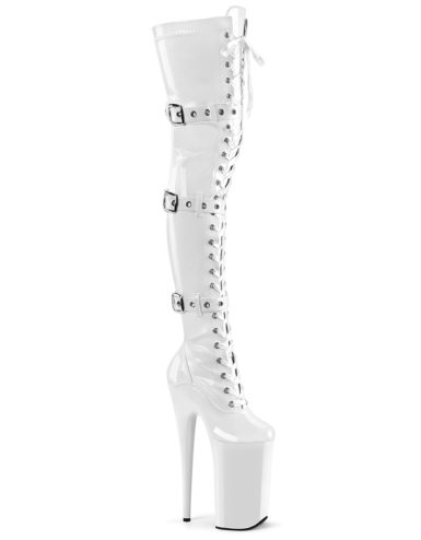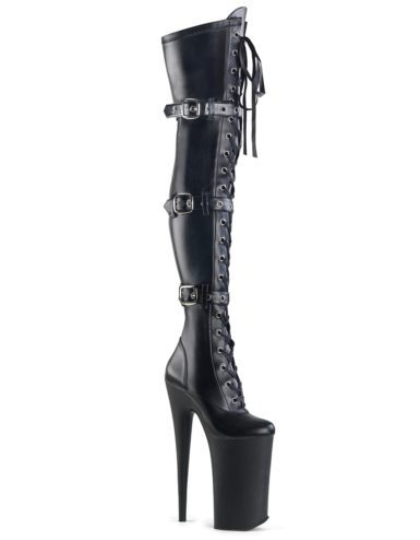 Original price was: €190.00.€152.00Current price is: €152.00.9″ (229mm) Heel, 5 1/4″ (133mm) Platform Ribbon Lace-Up Triple Buckle Strap Stretch Thigh High Boot, Full Inner Side Zip Closure.