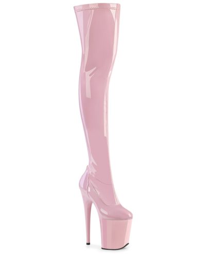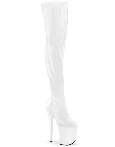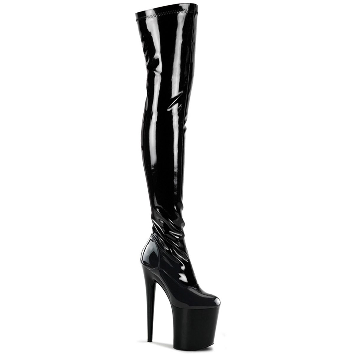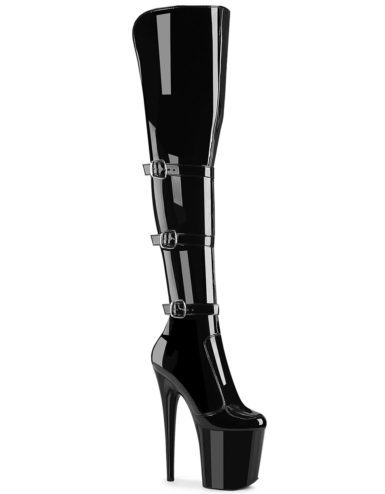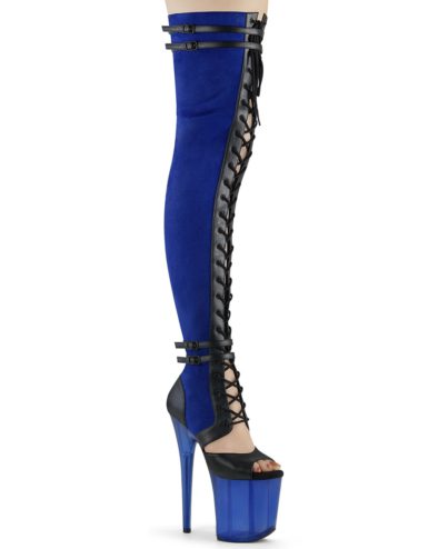 €229.0010″ (255mm) Heel, 6 1/4″ (160mm) Platform Stretch Ribbon Lace-Up Triple Buckle Strap Stretch Thigh High Boot, Full Inner Side Zip Closure. **WARNING: Extreme High Heels.