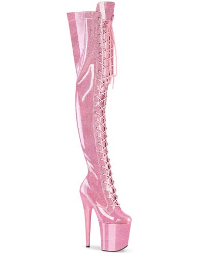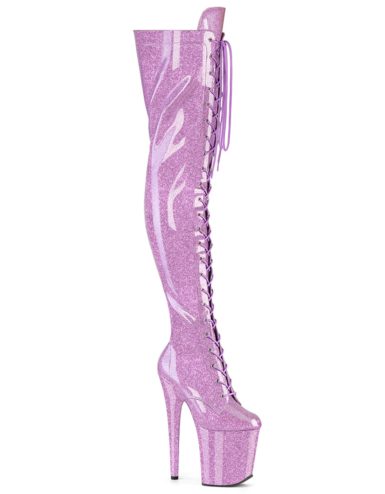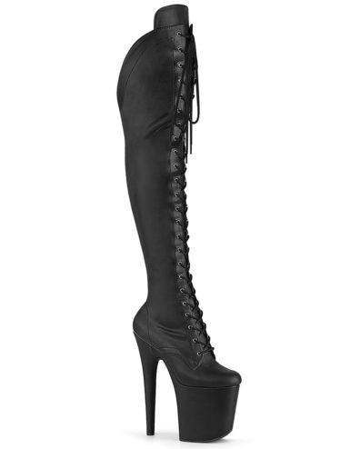8″ (200mm) Heel, 4″ (100mm) Platform Lace-Up Front Thigh High Boot w/ Fully Wrapped Platform Bottom, Full-Length Inner Side Zip Closure.