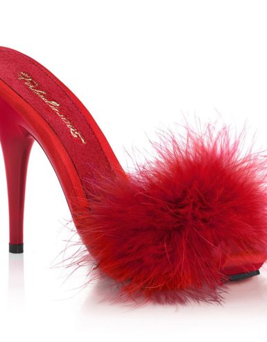 Будуарные шлепанцы на шпильке. Высота каблука 12.7см. Высота платформы 1см. Материал верха Атлас (марабу).