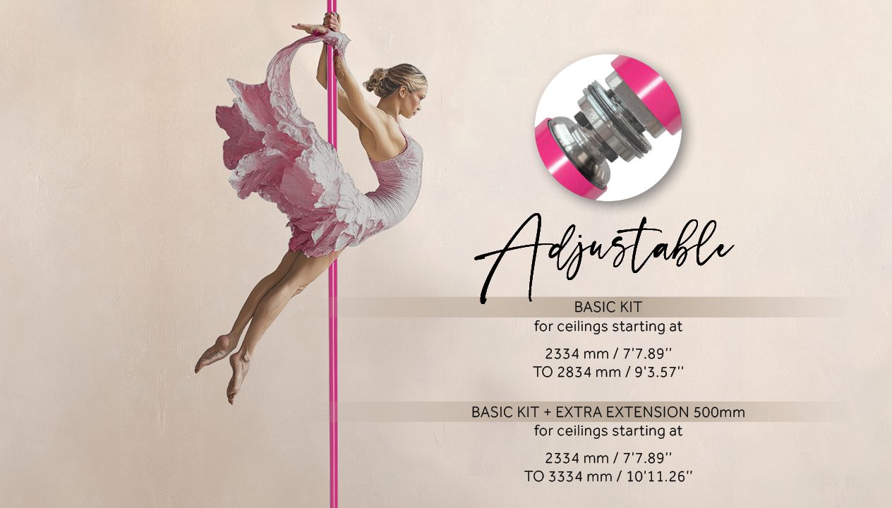 - В базовый комплект входит сборный пилон для потолка до 2800 мм. С удлинителем 500мм — до 3300 мм.